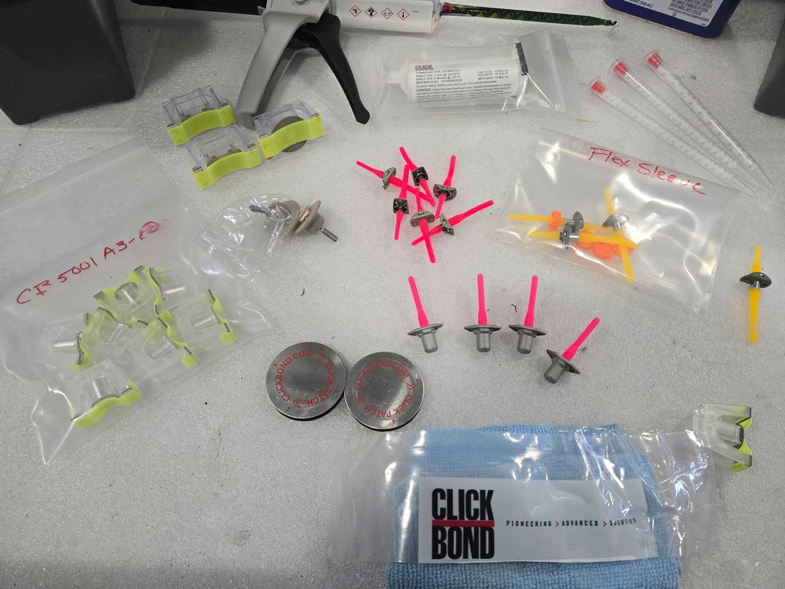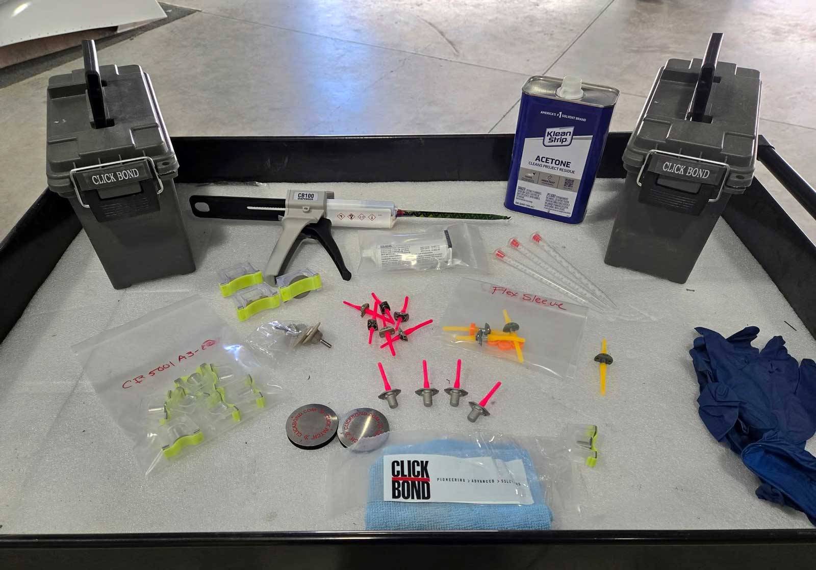 So often it was a two person process to hold and tighten fasteners in small spaces and around large surfaces like the flaps. CLICK bond an aerospace parts manufacturer provided the solution with it wide selection of fasteners that use a 2 part adhesive to attach it components.